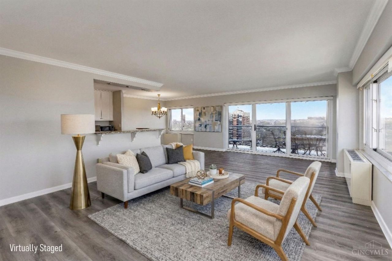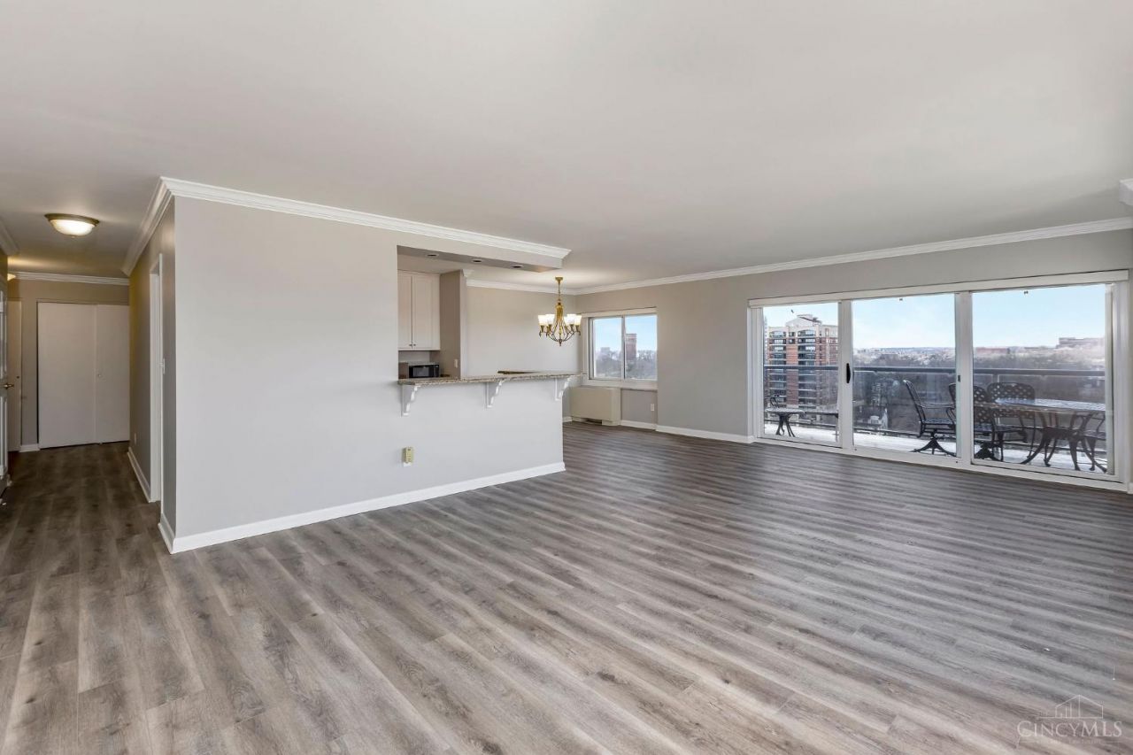 Spacious 2-bedroom/2-bath condo with open-concept layout and a private balcony with stunning 270 degree panoramic city and river views! Features include new LVP flooring, fresh neutral paints, new oven and refrigerator! It has abundant natural light. The kitchen offers granite countertops, newly finished cabinets and a breakfast bar. Primary suite with private bath, plus a versatile second bedroom. Convenient Cincinnati location near dining, shopping, and entertainment! Easy, care-free and low-maintenance living in a well-maintained building that has new elevator and HVAC system. Come make it your dream home!